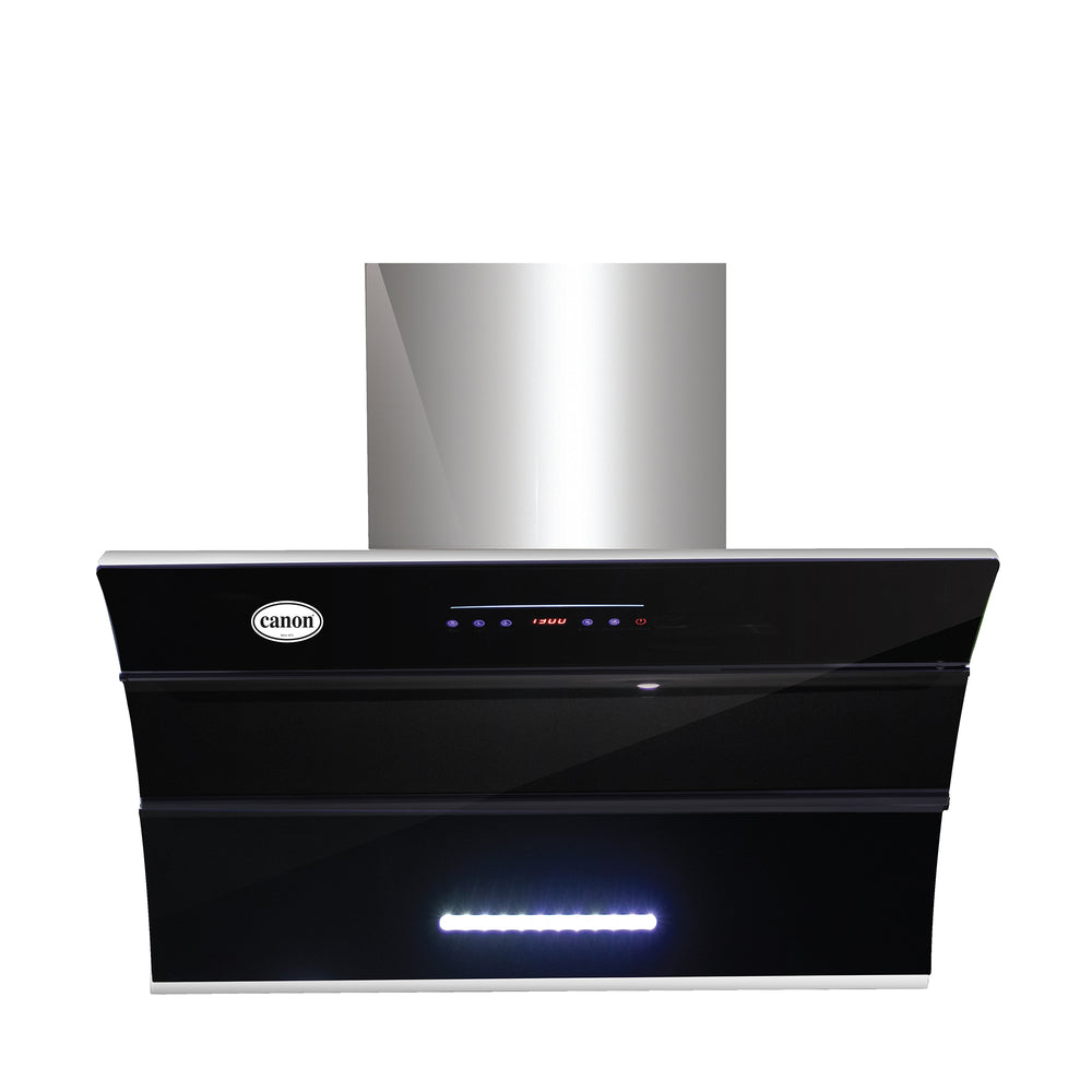 Exquisite Designers hood, Black tempered Glass 900mm S.S Chimney, 3 Speed touch switch with hand sensor & English voice control , 3 Speed double bearing motor open copper, Metal wind cabinet…
